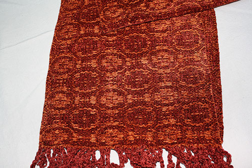 Terry did this small runner with a painted warp. That is the warp threads are painted before being woven.