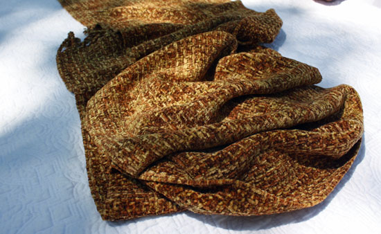 Ronnie found a pattern called Brighton so she wove this magnificent scarf in that structure.