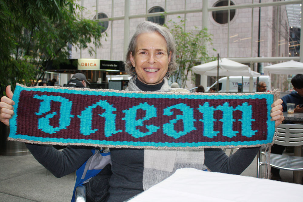 Claudia picked a Keith Harring image for her "Doodle". Not easy to do in tapestry. She wound up with a lot of bobbins working across and some of the finer lines just not practical in tapestry.
