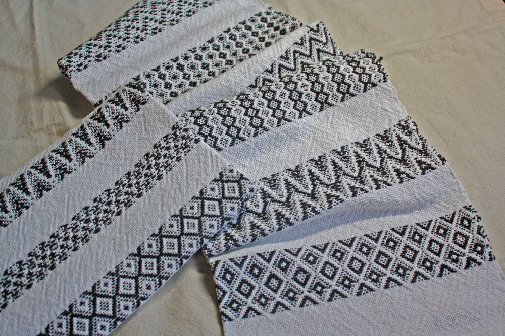 Terry created these towels with "Doodles". Not wanting to chanage the tie-up from a previous piece on the loom, he just varied the sequence to treadling