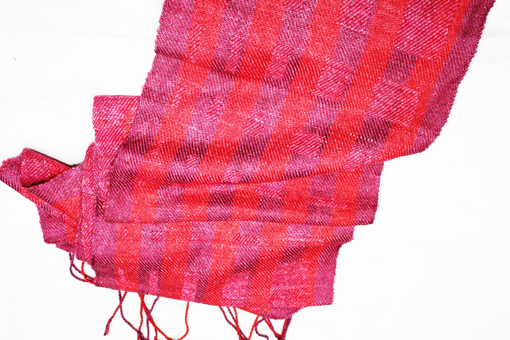Terry made the Fibonacci sequend in the sizes of the twill blocks in this scarf.