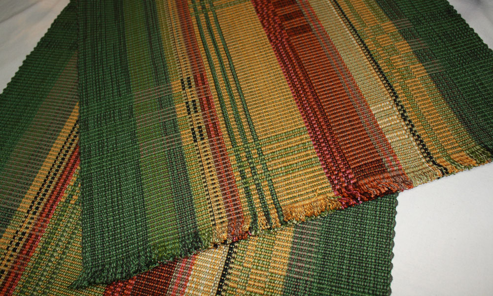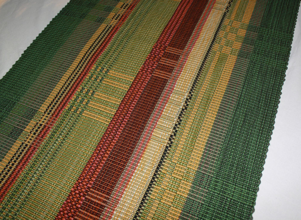 Carol S. created this table runner as a comission for a neighbor who loves green .