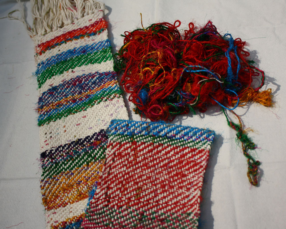 Some of the sari silk (she got it on a trip to India!) is there tangled next to the woven piece.