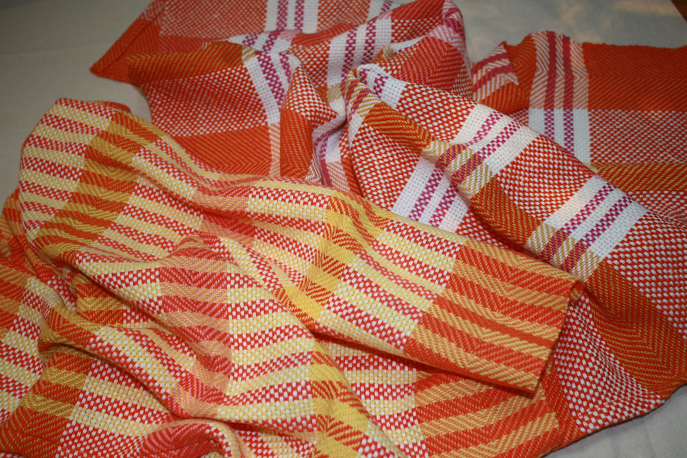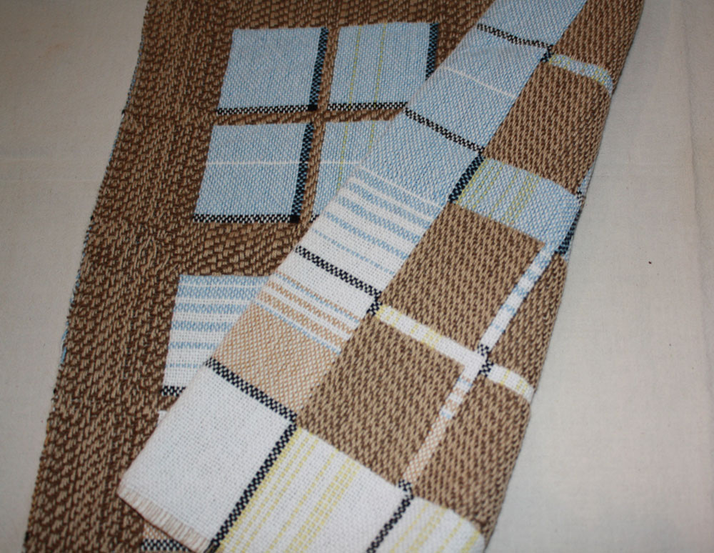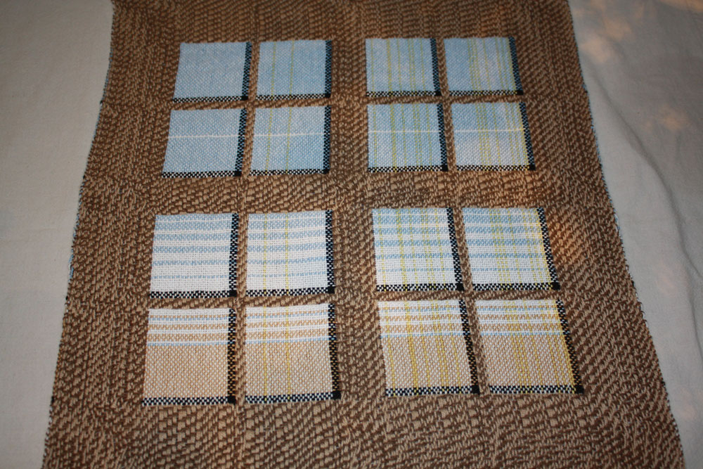 Oren always comes up with some splendid technical challenges. This is block double weave. THe framing layer is a very complex weave. .