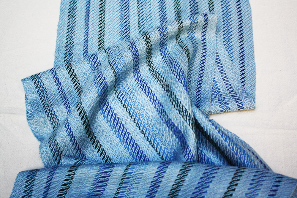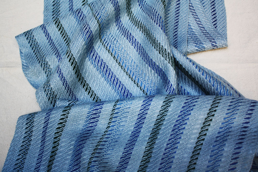 Carol worked in a wave feeling with an advancing twill pattern. This is all tencel.