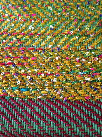 After plain weave and 2/2/twill we showed how to do what we called "pattern weaving". This was really a unique lifting sequence. The students seemed to like this a lot especially as we started introducing a wider variety of yarn.