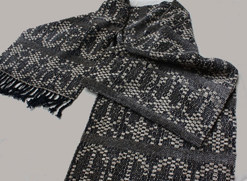 The use of leno in the main portion and the care with the fringe knotting are worth special attention. Some work!!!