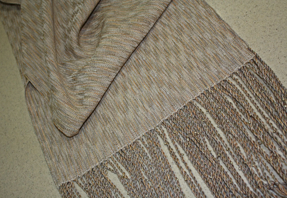 Carol's shawl is certainly one of the most elegants pieces we have seen. She was out of the box because she wanted to break the usual boxy look of most weave structures.