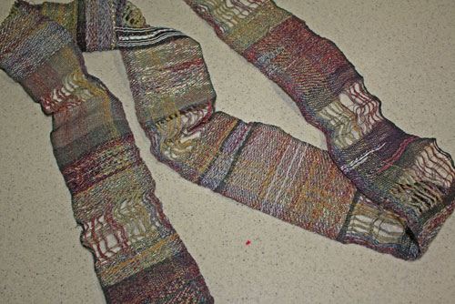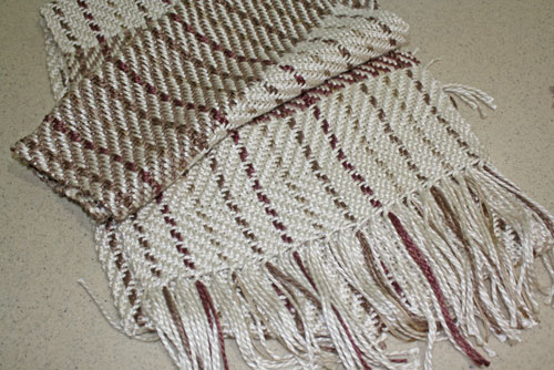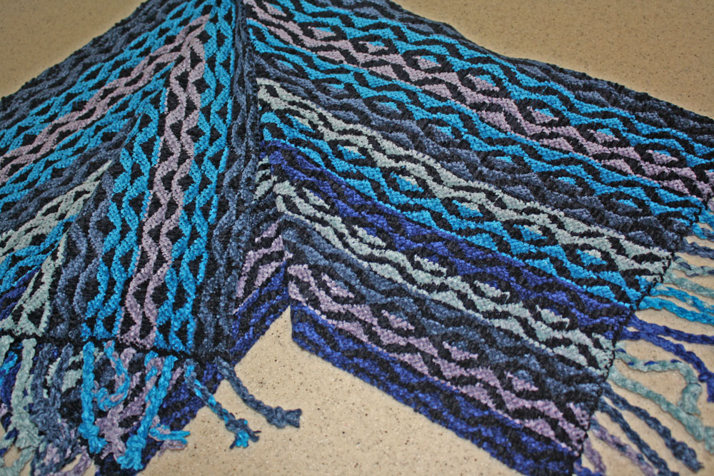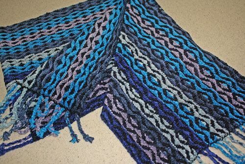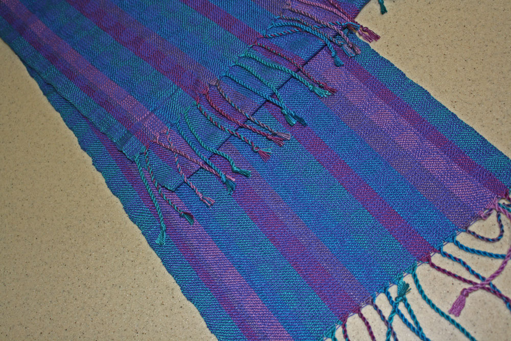 The space dyed warp and the complicated treadling sequence really helped with that.