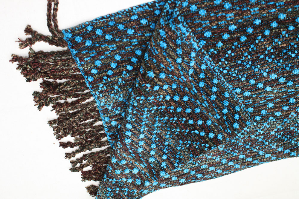 Ronnie continued to explore Bateman weaves. She says that they are designed for very fine threads but they really work well with her favorite yarn, chenille.