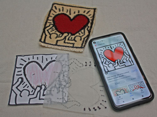 Claudia picked a Keith Harring image for her "Doodle". Not easy to do in tapestry. She wound up with a lot of bobbins working across and some of the finer lines just not practical in tapestry.