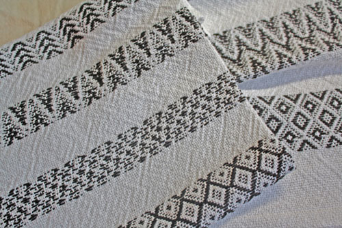 Terry created these towels with "Doodles". Not wanting to chanage the tie-up from a previous piece on the loom, he just varied the sequence to treadling