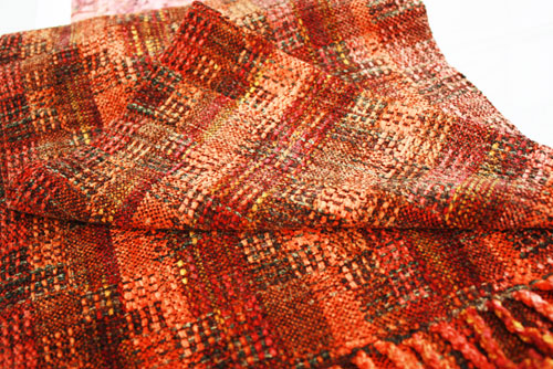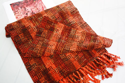 Ronnie's beautiful chenille scarf was inspired by a painting called “Fire” by Julie Mehretu that she saw at an exhibition at the Whitney.