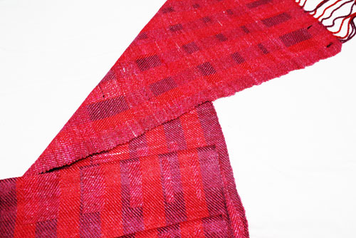 Terry made the Fibonacci sequend in the sizes of the twill blocks in this scarf.
