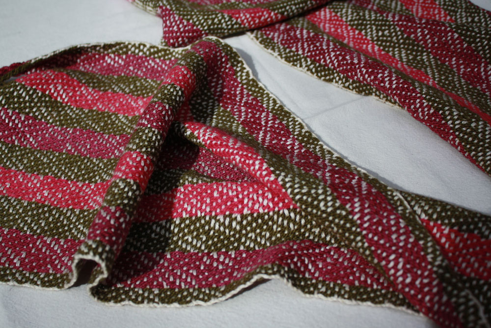 The three towels were from the same cotton warp with different treadlings. The suplemental one was woven with Irish linen.