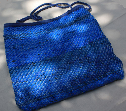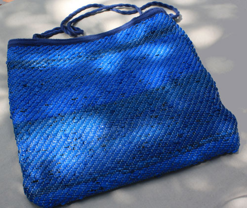 Freedom of the Press inspired Barbara. The weft in this bag is "plarn" made from the plastic wrappers that hold copies of The Times.