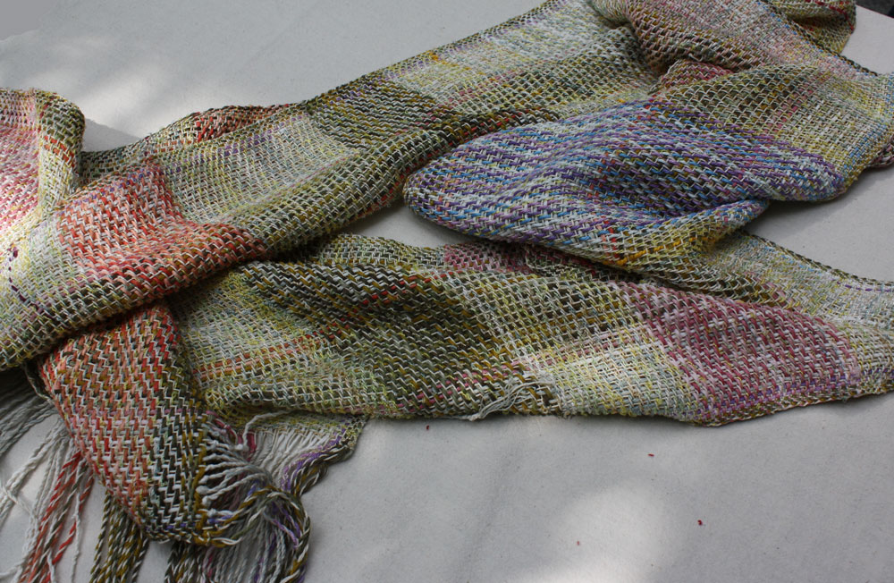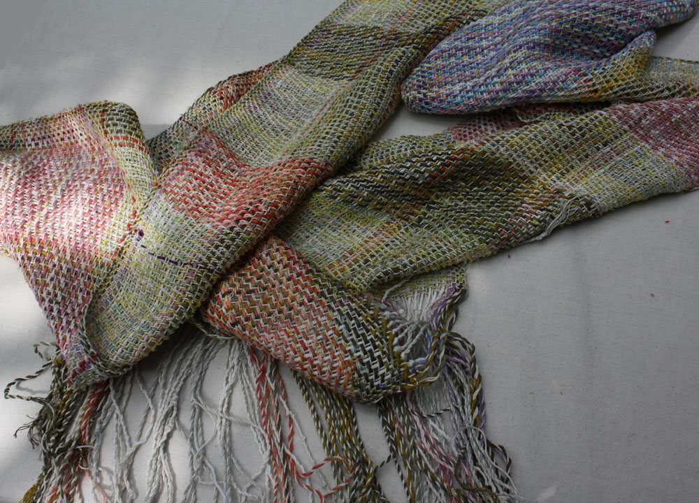 Silk warp too. A sort of liberating pleasure was had cutting the ties into strips for the weft.