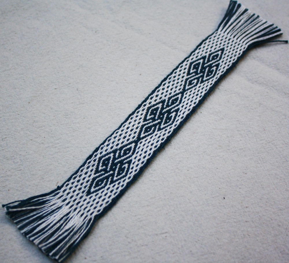 Carol wanted to weave bookmarks for an bokmark exhange at H.G.A. this summer. She tried several times to get the weaving correct on an inkle loom.