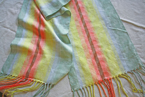 So this was the response for Claudia. Multiples with different colors. Claudia said the yarn was problematic as a warp as it broke easily. We say the result was a success!