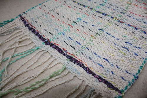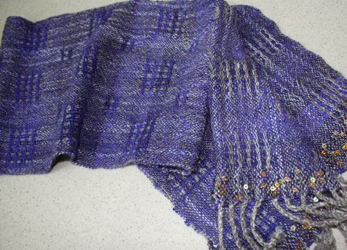 Carol made this lush chenille scarf. Just have to love the colors and pattern in those stripes.