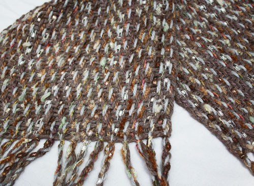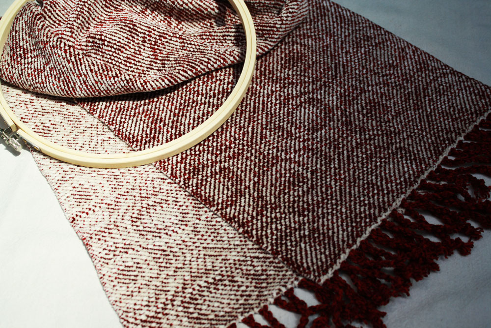 And hoops there are! Carol wove this great scarf with hoops all over.