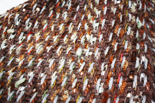 Claudia jumped through hoops just getting the yarn for this project. She actually undid a novelty yarn that made up all the warp.