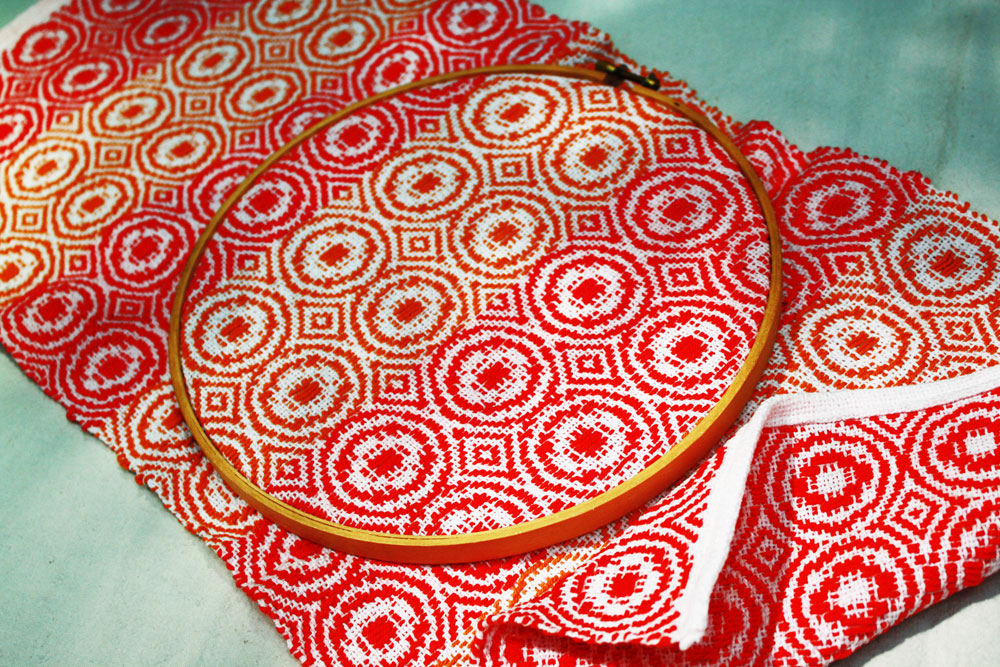 Terry made the table runner shown here with an overshot pattern. Its pattern is certainly hoop like.