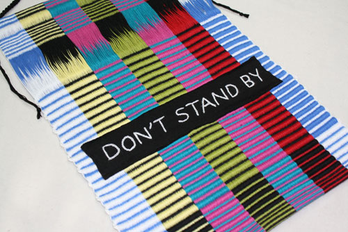 The rep weave hanging captures the image perfectly and turns th etables with the embroidered message. Fun Katy!!