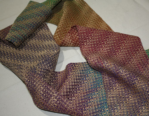 Carie wove the painted warp she bought on her trip to MAFA last time. Certainly a fine finish for that trip.