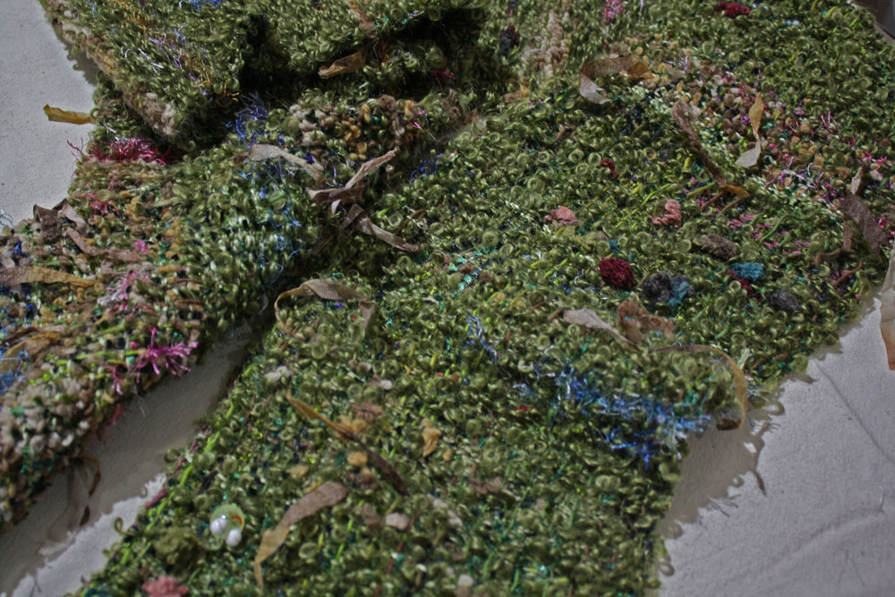 Carol too was reminded of lifes journey. The scarf on the left was an early hand woven gift from her mother that she truly loves. The scarf on the right plays on the themes in the original with lots of different threads in the warp.