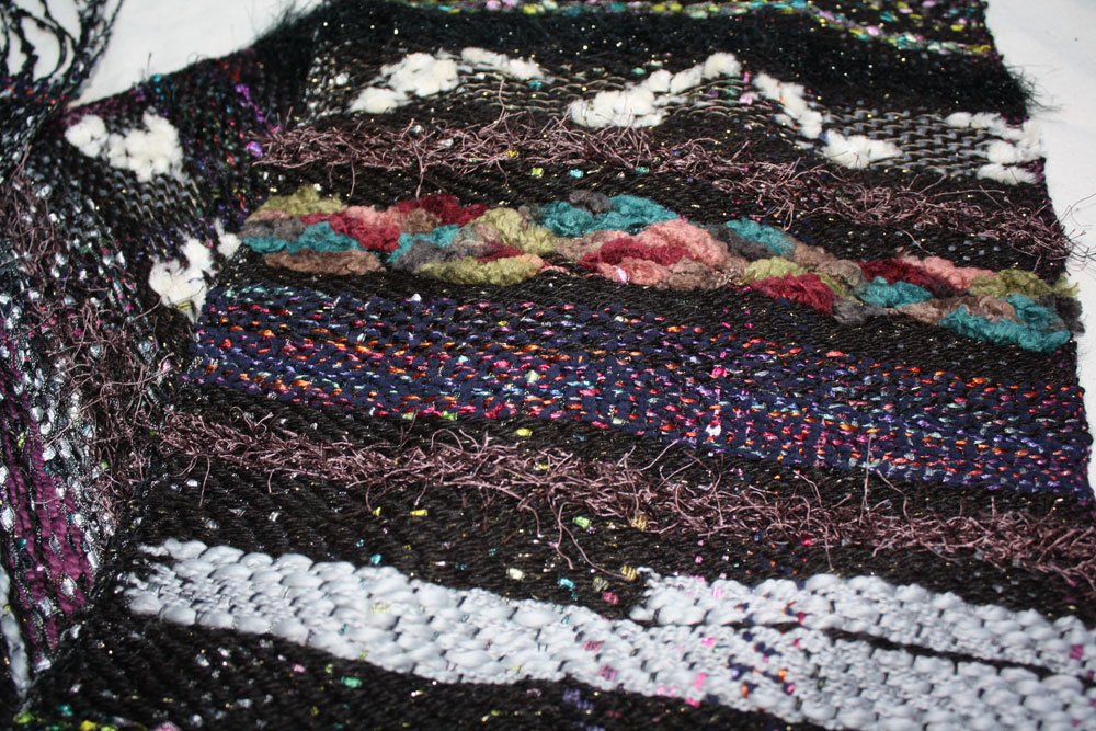 The metalic yarn used in the pieces reflect the light that Claudia found inspiring.