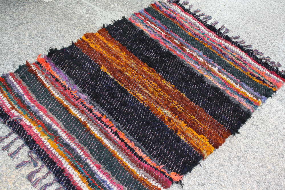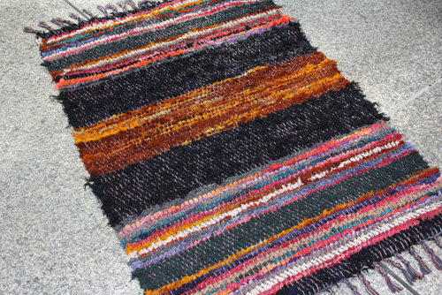 Darby created this great rug from slevages of commercial weaving.