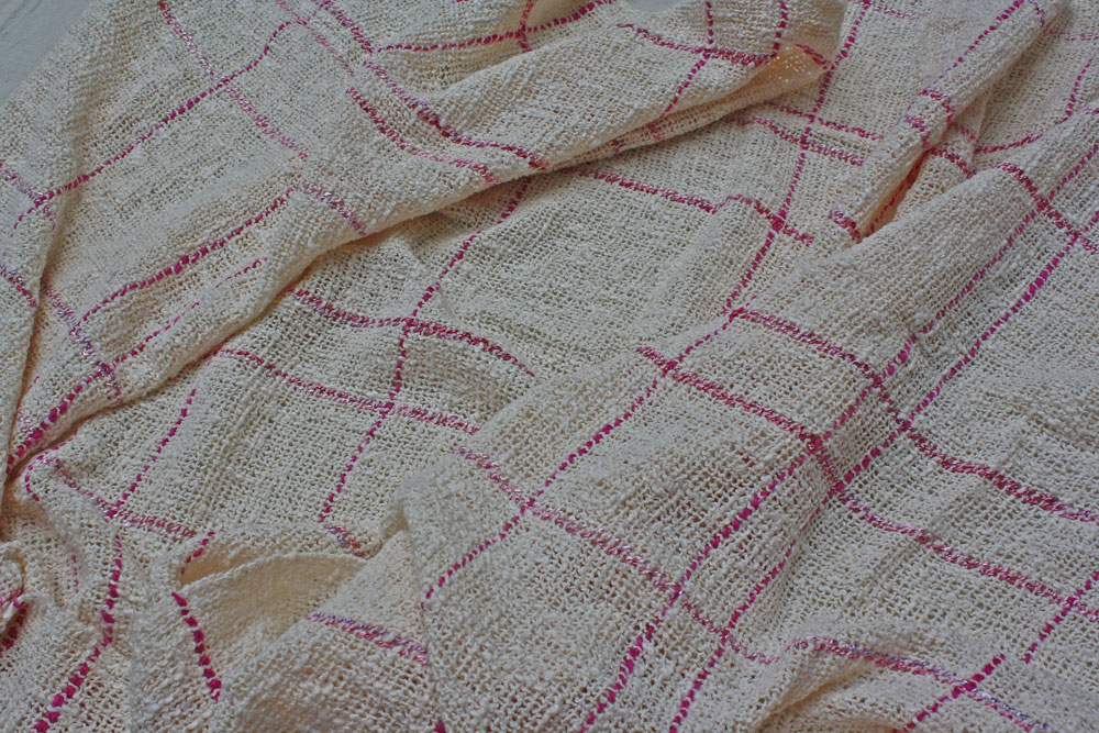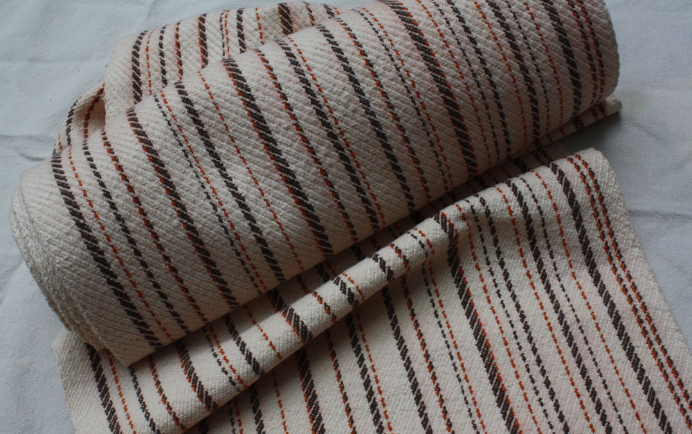 It was woven probably more than 30 years ago and given to someone who promised to make a vest for him. Long lost it was recently returned. Thanks to Christine for keeping it all this time.