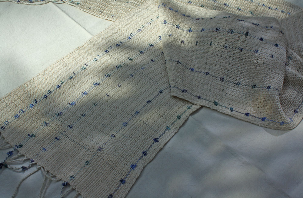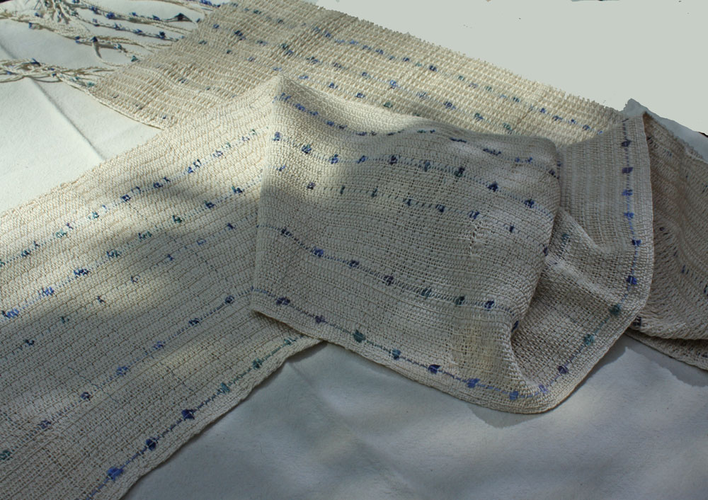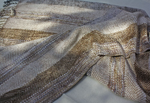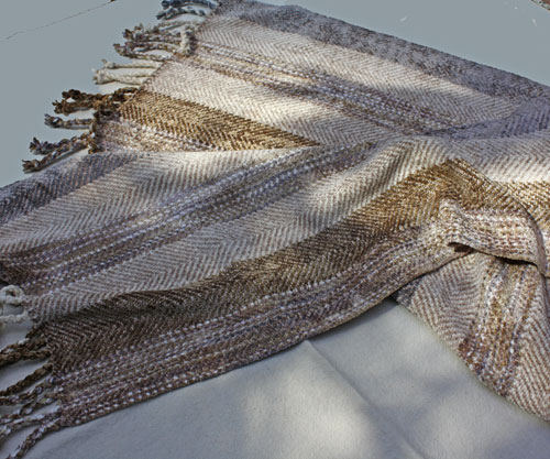 Ronnie always has a wonderful piece to show. No exception here. We were getting a little shadow from the bamboo overhead but it works with the lovely colors in this scarf.