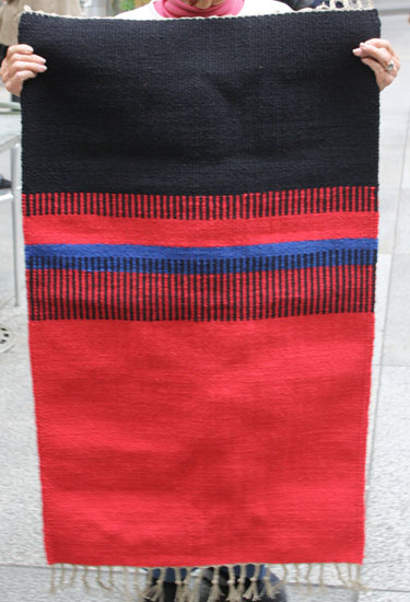 Ronnie tried Saori weaving. In that philosophy there is no mistake. She just had fun with different treadlings.