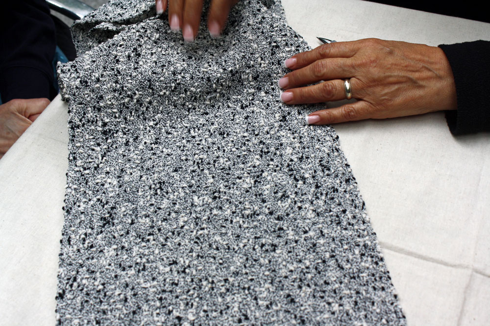 Terry's version "Anything Without a Mistake" featured a novelty yarn in both warp and weft. It is a crepe weave.