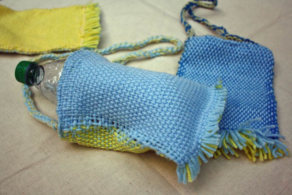 Barbara wove some clever tubes (round and round!) to make water bottle carriers.