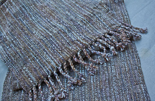 Claudia created this fabulous scarf in smoky colors. She said that she got the idea for this challenge from a musician who was playing this song as we were leaving one of our previous meetings.