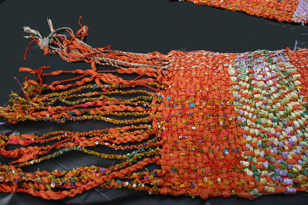 Terry said the sows ear in this piece was the weft yarn. It was somewhat coarse and scratchy. Not something to go with the silk warp.