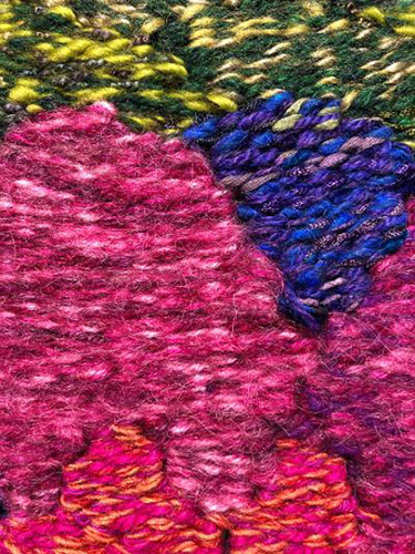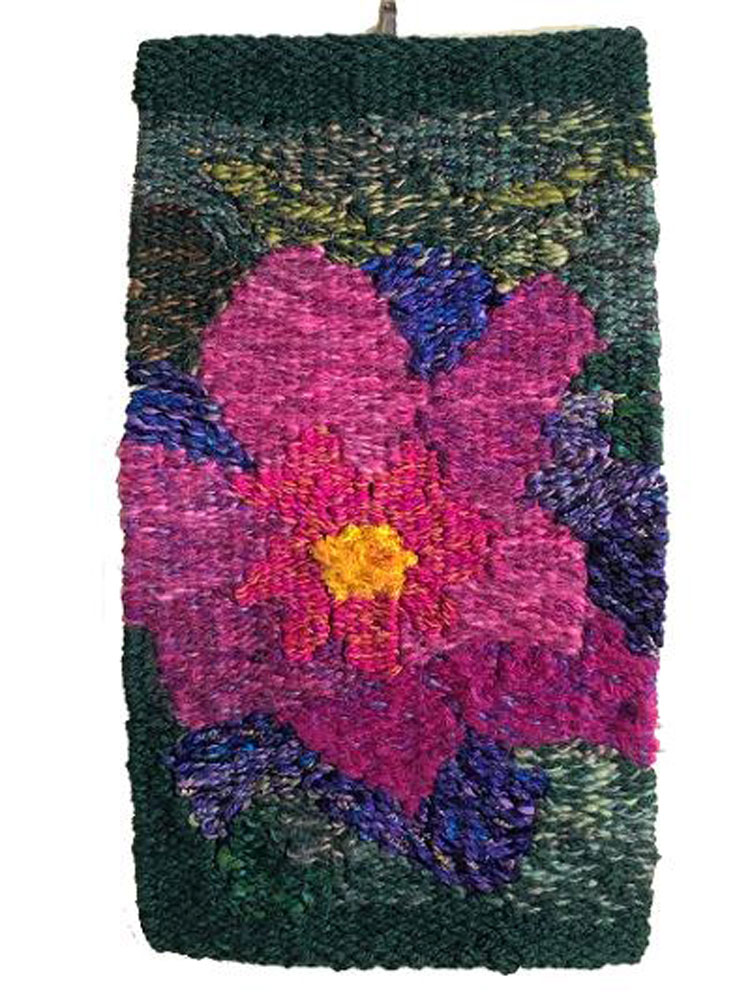Carol: My idea was a flowering vine creeping up a wall. I have a very limited amount of yarn at home so I did this as a tapestry..