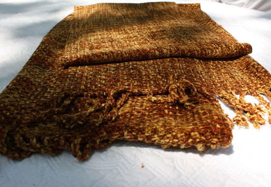 Ronnie found a pattern called Brighton so she wove this magnificent scarf in that structure.