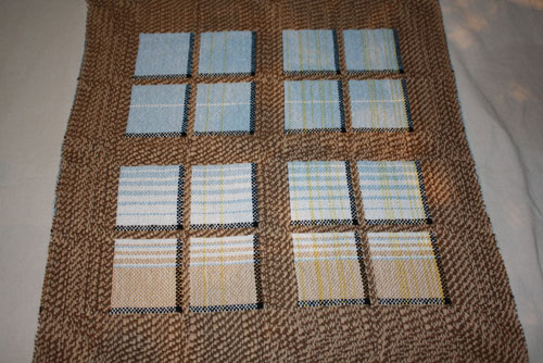 Oren always comes up with some splendid technical challenges. This is block double weave. THe framing layer is a very complex weave. .