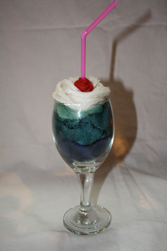 The delisious looking liquid is actually his handspun yarn. Cheers!!!.
