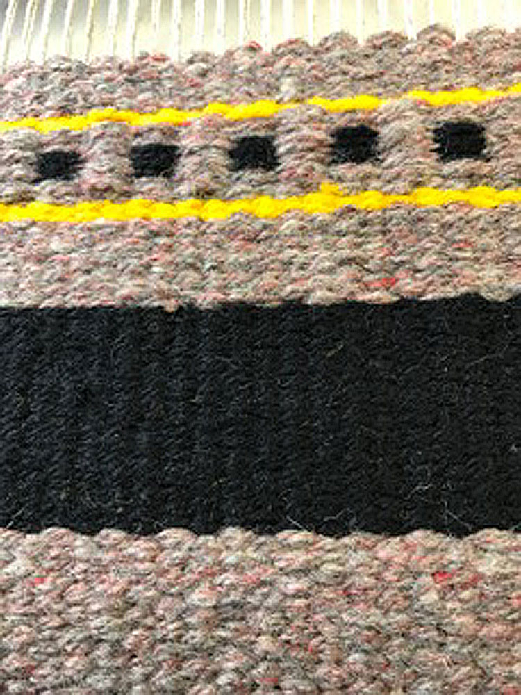 Terry needed to replace some pot holder that he wove over 30 years ago. The originals (the brown ones underneath) were getting pretty ragged. New ones are in the same block double weave technique.