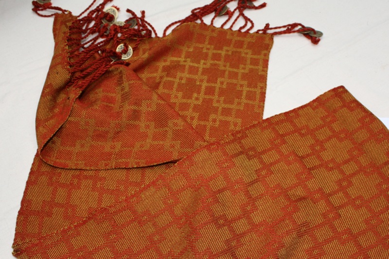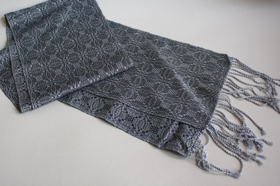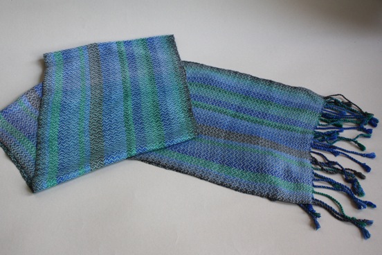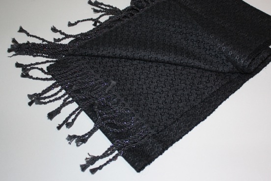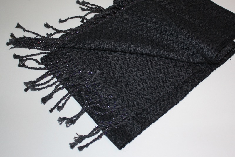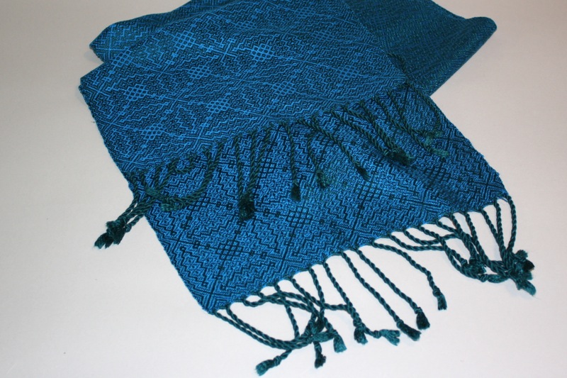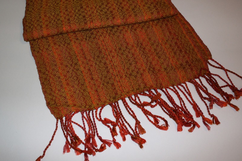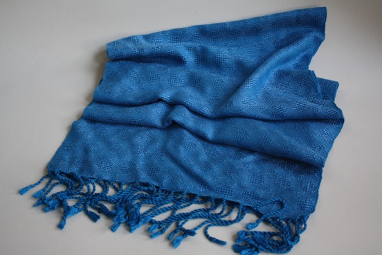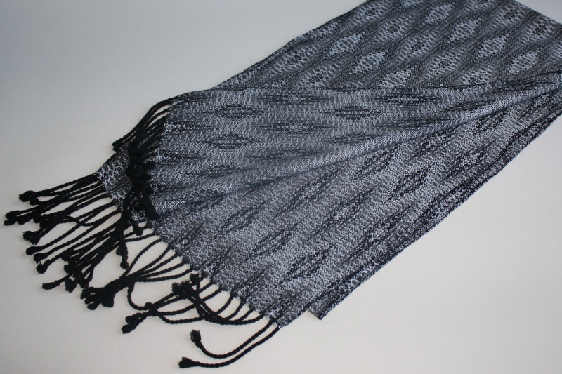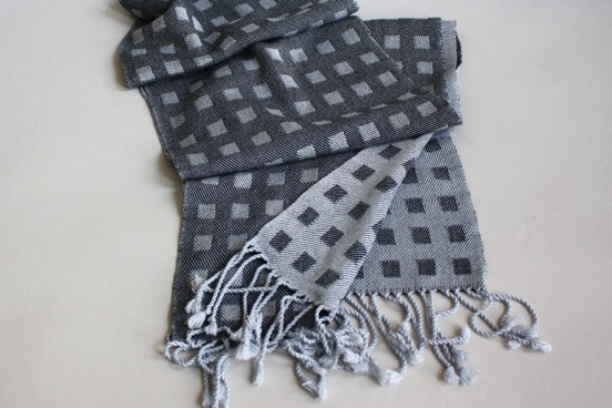 "All my work is one of a kind. Scarves range in price from $85 to $125. Shawls range from $100 to $150. Towels are $20 to $35 each.